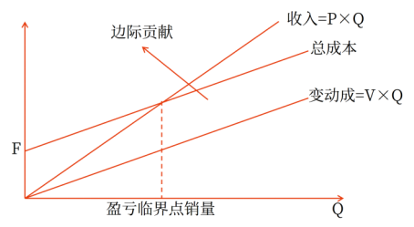 本量利的基本模型 | 息稅前利潤=單價×銷量-單位變動成本×銷量-固定成本 =P×Q-V×Q-F=(P-V)×Q-F |