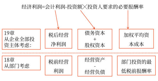 基本 公式 | 經濟增加值 =調整后稅后凈營業(yè)利潤-加權平均資本成本×調整后平均資本占用 【提示】 (1)稅后凈營業(yè)利潤與本教材第二章介紹的管理用財務報表體系中的“稅后經營凈利潤”相同 (2)平均資本占用反映的是企業(yè)持續(xù)投入的各種債務資本和股權資本 (3)加權平均資本成本反應的是企業(yè)各種資本的平均資本成本率 |