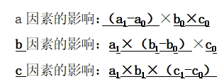 差額分析法只適用于當(dāng)綜合指標(biāo)等于各因素之間連乘時;當(dāng)綜合指標(biāo)是通過因素間“加”或“減”形成時,不能用差額分析法。