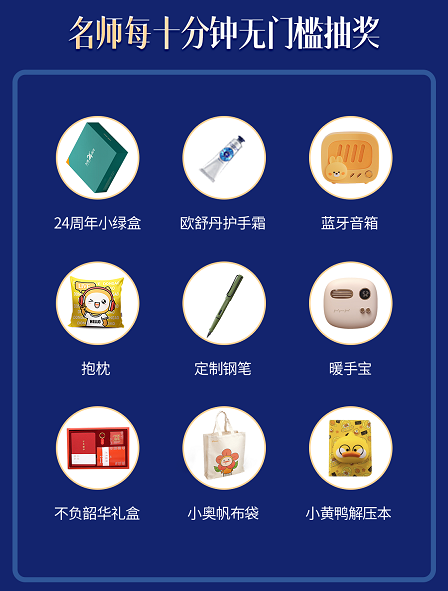 使用名師超能券付尾款,前23位使用名師超能券付尾款者,可獲得“名師高光禮”—24k純金“逢考必過”純金手鏈+名師同款好物1份。