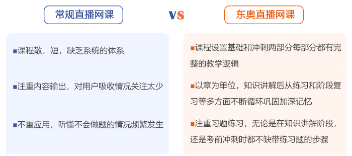 從東奧公開(kāi)試聽(tīng)的直播課程來(lái)看,東奧直播網(wǎng)課一步一步印證了東奧在直播內(nèi)容體系設(shè)置上的優(yōu)化!