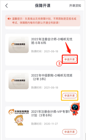 登錄【會(huì)計(jì)云課堂】→右下角“我的”→“訂單相關(guān)”→“保障開(kāi)課”→“申請(qǐng)開(kāi)課”,人臉識(shí)別成功后,可開(kāi)通2024考季課程;