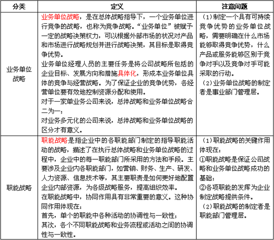 公司戰(zhàn)略分為三個(gè)層次:總體戰(zhàn)略、業(yè)務(wù)單位戰(zhàn)略(或競爭戰(zhàn)略)、職能戰(zhàn)略。