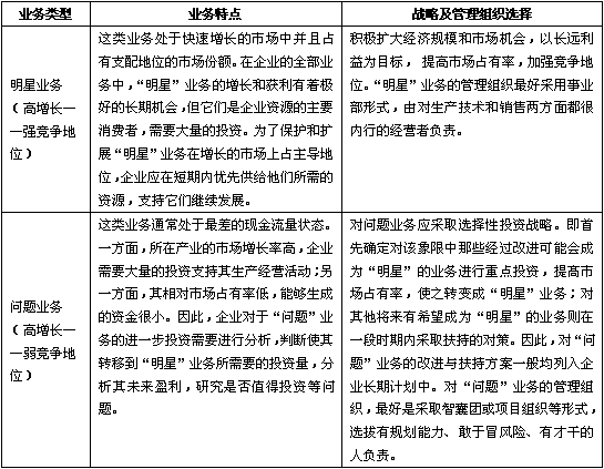 (1)發(fā)展。以提高經(jīng)營(yíng)單位的相對(duì)市場(chǎng)占有率為目標(biāo),甚至不惜放棄短期收益。若“問題”類業(yè)務(wù)想盡快成為“明星”類業(yè)務(wù),就要增加資金投入。