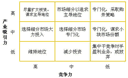 產業(yè)吸引力和競爭地位的值決定著企業(yè)某項業(yè)務在矩陣上的位置。