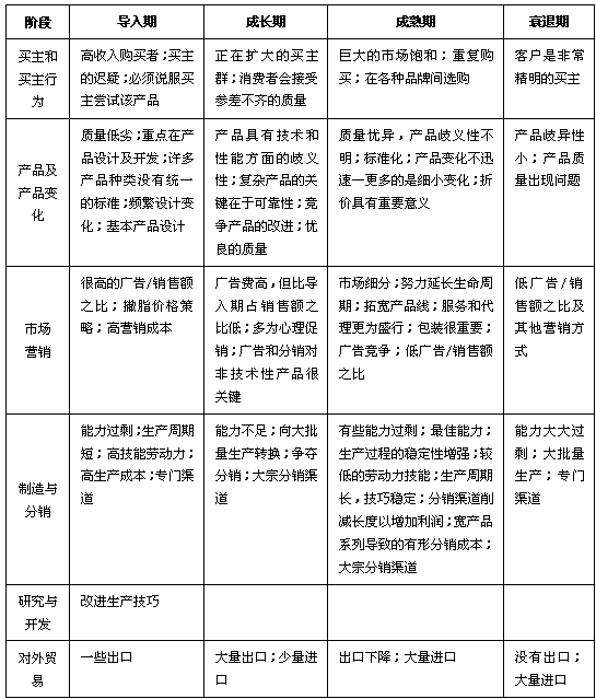 波特認(rèn)為,“預(yù)測產(chǎn)業(yè)演變過程的鼻祖是我們熟知的產(chǎn)品生命周期”!瓣P(guān)于生命周期只適用于個別產(chǎn)品還是適用于整個產(chǎn)業(yè)存在著爭論。這里概括了認(rèn)為適用于產(chǎn)業(yè)的觀點”。