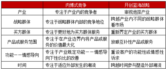 紅海思維:接受現(xiàn)有產(chǎn)業(yè)固化的功能情感導(dǎo)向。