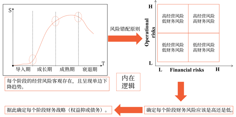 3.經(jīng)營風險與財務(wù)風險反向搭配是制定資本結(jié)構(gòu)的一項戰(zhàn)略性原則。產(chǎn)品或企業(yè)的不同發(fā)展階段有不同的經(jīng)營風險,企業(yè)應(yīng)采用不同財務(wù)戰(zhàn)略。