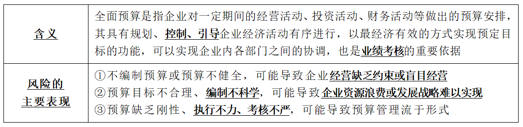 企業(yè)應對全面預算管理風險,應重點關注預算編制與下達、預算指標分解和責任落實、預算執(zhí)行、預算分析與調整和預算考核等方面的管控措施。