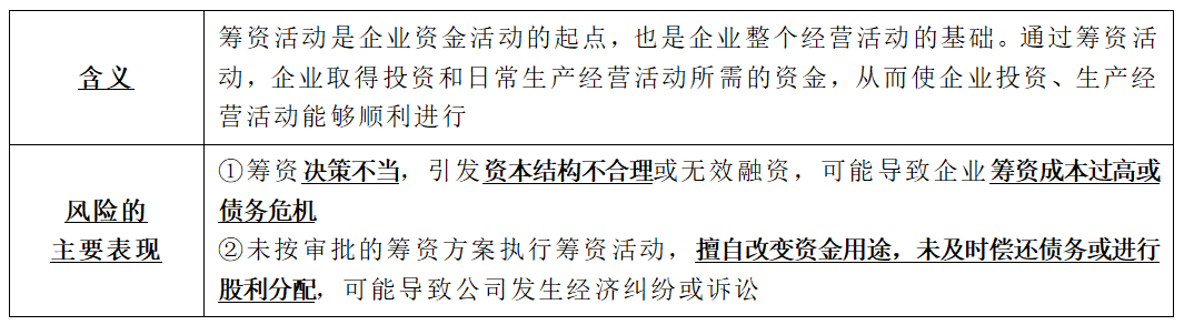 企業(yè)應對籌資管理風險,應重點關注籌資方案可行性論證、籌資方案審批、籌資方案實施與籌資會計系統(tǒng)控制等方面的管控措施。