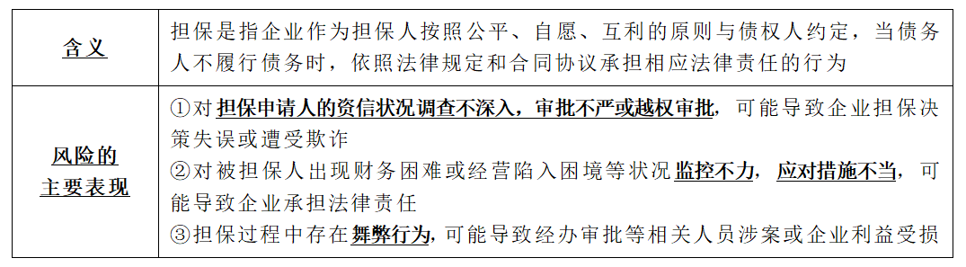 企業(yè)應對擔保業(yè)務風險,應重點關注擔保調查評估、授權審批、擔保合同簽訂、日常監(jiān)控和會計控制等方面的管控措施。