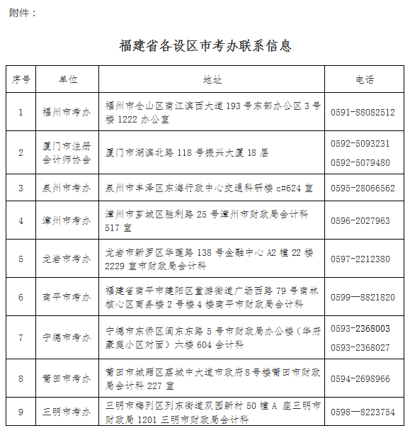 附件:福建省各設區(qū)市考辦聯(lián)系信息