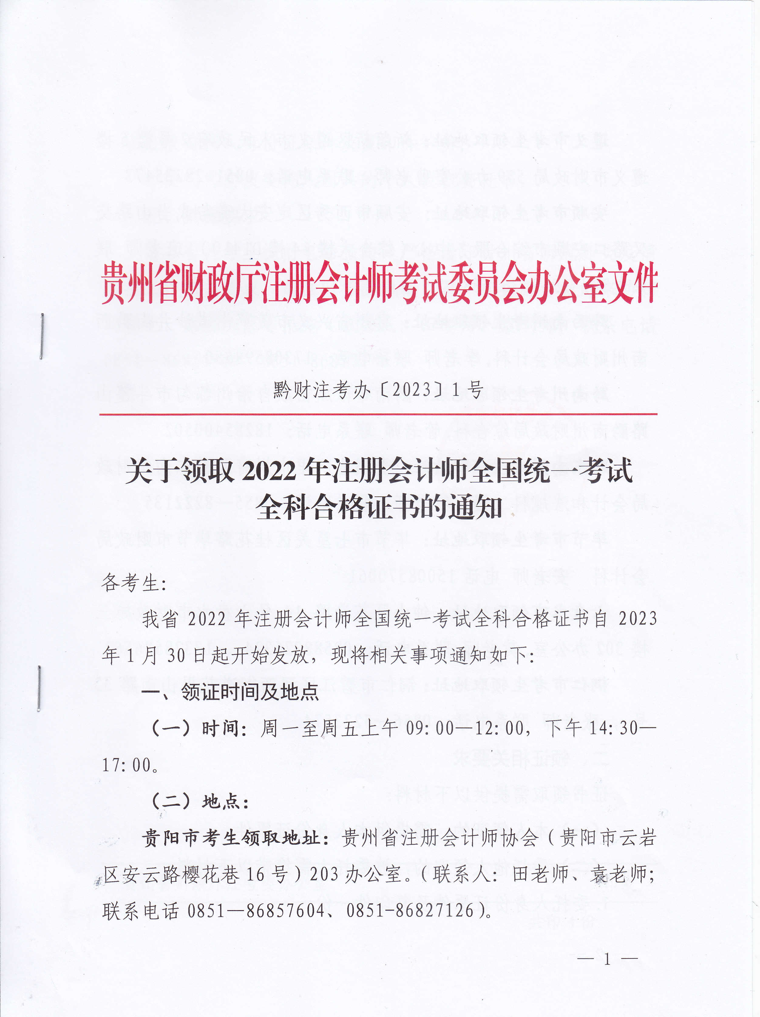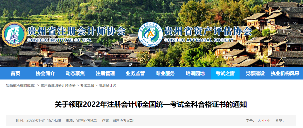 貴州省注協(xié)發(fā)布關(guān)于領(lǐng)取2022年注冊會計(jì)師考試全科合格證書的通知