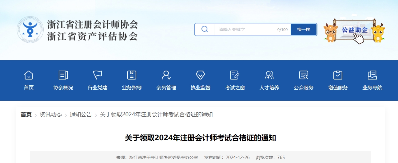 浙江注協(xié)發(fā)布關于領取2024年注冊會計師考試合格證的通知