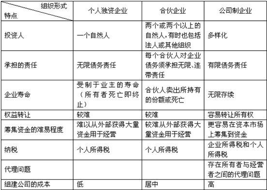 2014《財(cái)務(wù)成本管理》基礎(chǔ)考點(diǎn):企業(yè)的組織形式