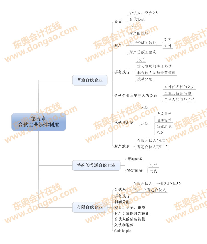 【東奧小編】2014年注冊(cè)會(huì)計(jì)師考試正式進(jìn)入基礎(chǔ)備考階段,注會(huì)知識(shí)點(diǎn)繁雜細(xì)碎,想要全面掌握注會(huì)各科目的知識(shí),需要科學(xué)高效的學(xué)習(xí)方法,思維導(dǎo)圖正是一種非常適合注會(huì)復(fù)習(xí)的學(xué)習(xí)方法,正確利用思維導(dǎo)圖,不僅能使自己積極進(jìn)行知識(shí)點(diǎn)總結(jié),形成清晰的思路,還能對(duì)知識(shí)點(diǎn)進(jìn)行快速查漏補(bǔ)缺。以下是2014《經(jīng)濟(jì)法》第五章合伙企業(yè)法思維導(dǎo)圖: