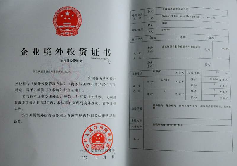 2.企業(yè)境外投資證書