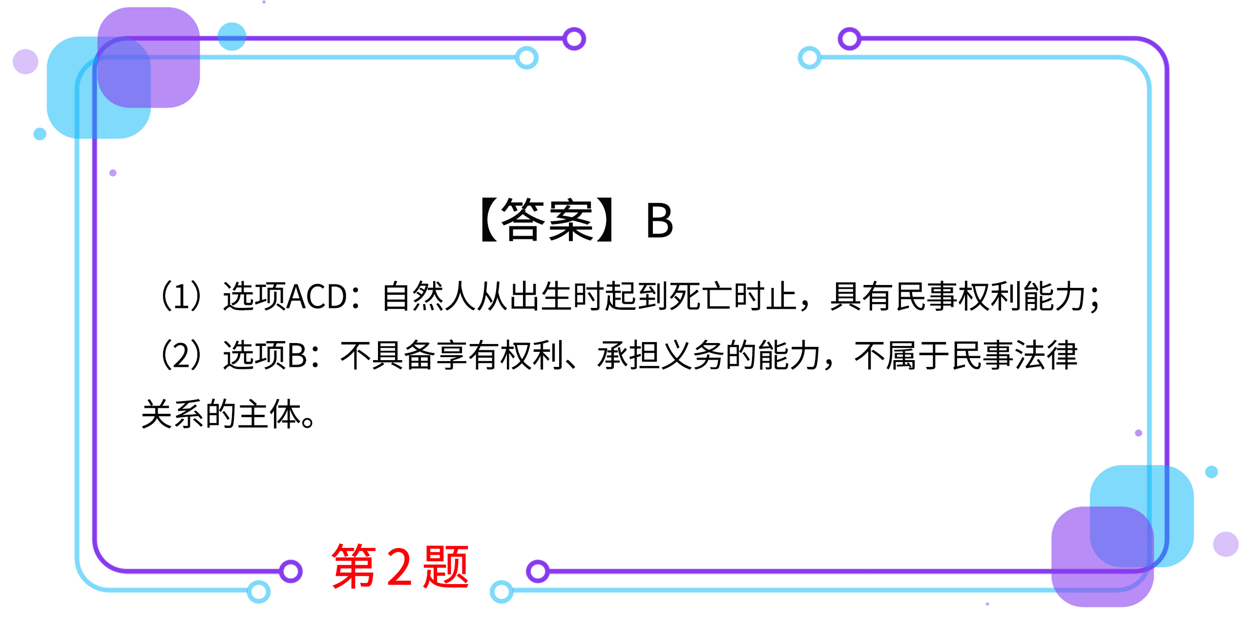 2.根據(jù)民事法律制度的規(guī)定,下列各項中,屬于無民事權(quán)利能力的是( )。(2019年)