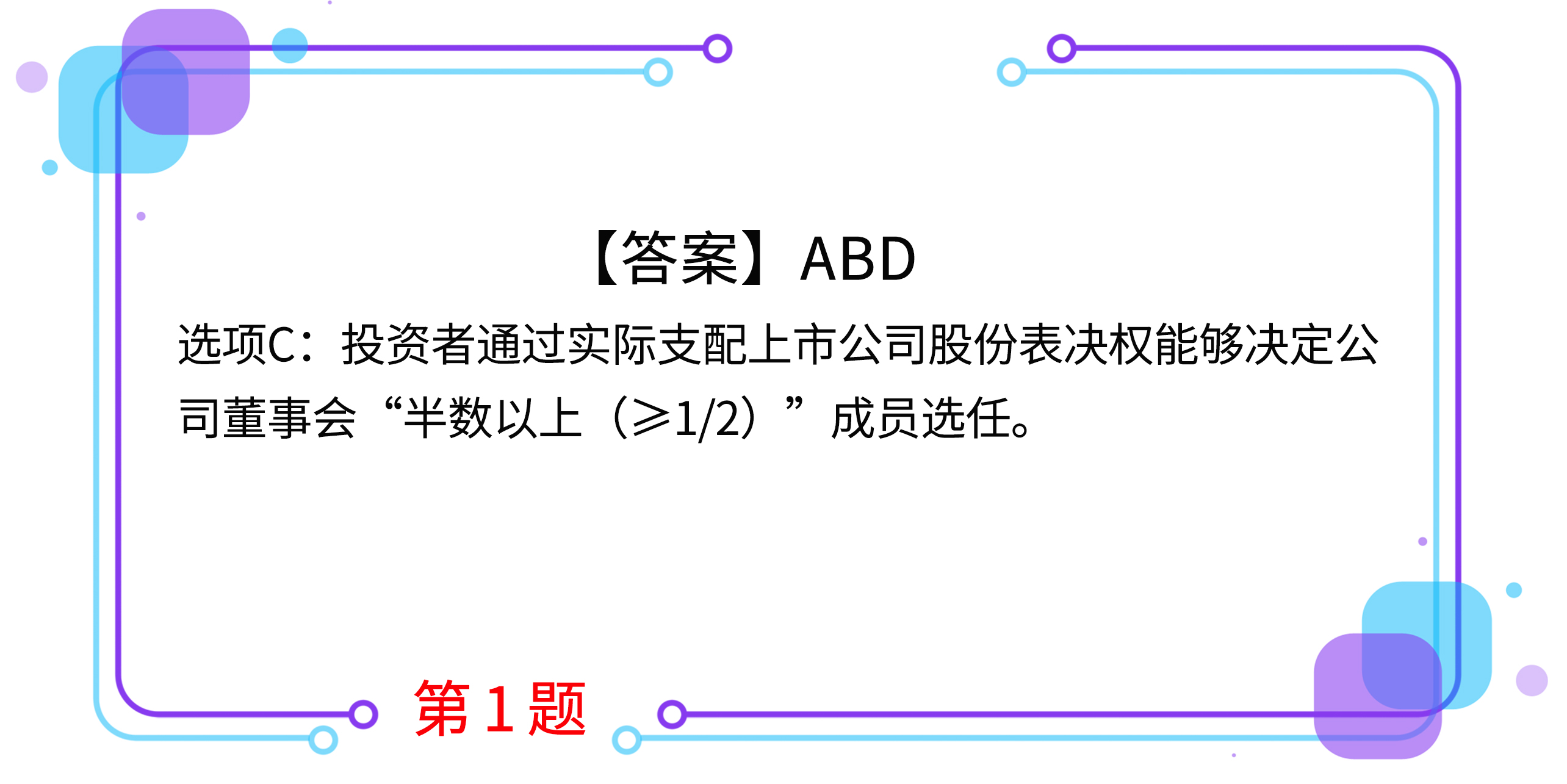 C.投資者通過實(shí)際支配上市公司股份表決權(quán)能夠決定公司董事會(huì)1/3成員選任