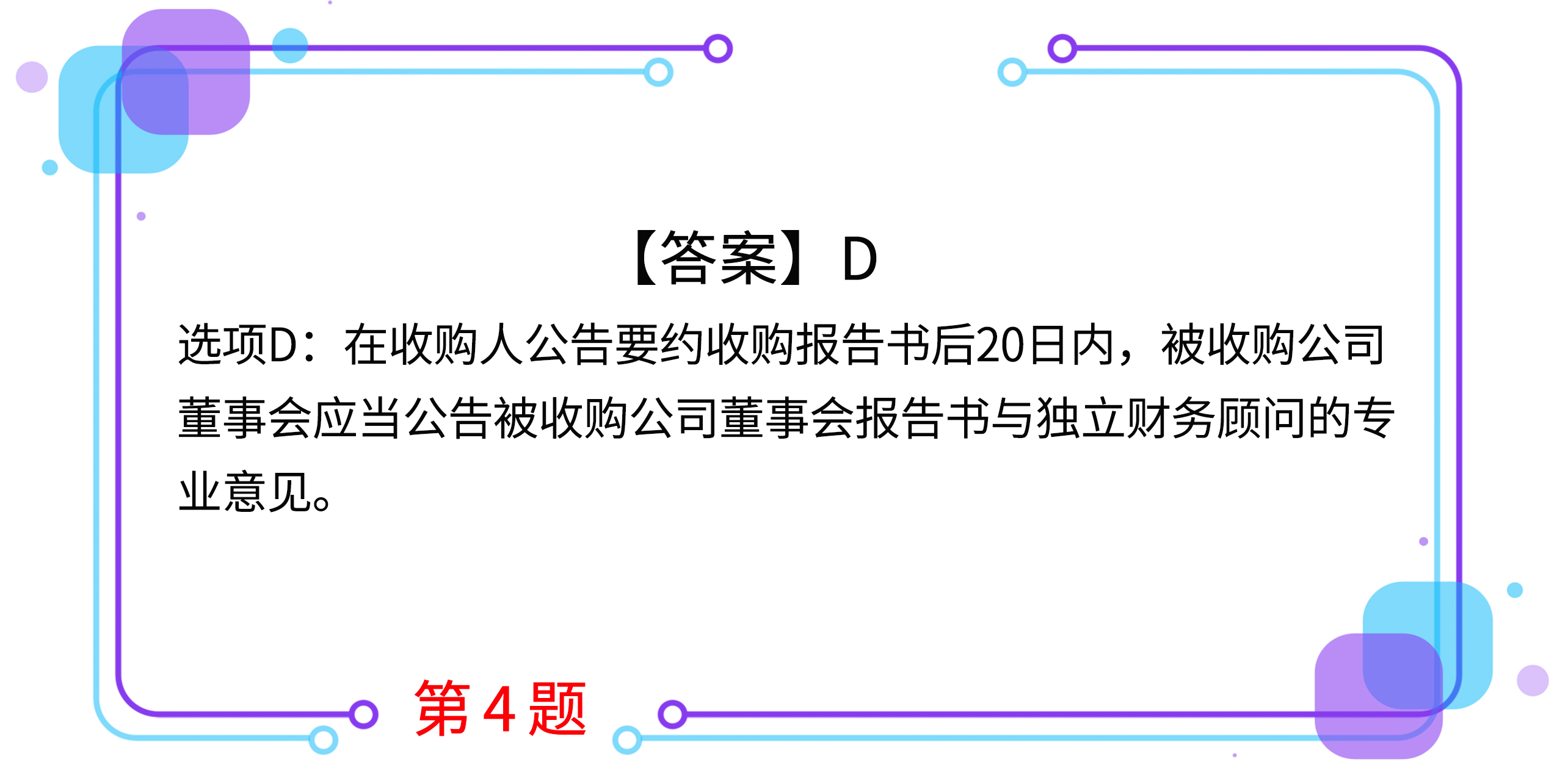 D.在收購人公告要約收購報(bào)告書后30日內(nèi),被收購公司董事會(huì)應(yīng)當(dāng)公告被收購公司董事會(huì)報(bào)告書與獨(dú)立財(cái)務(wù)顧問的專業(yè)意見