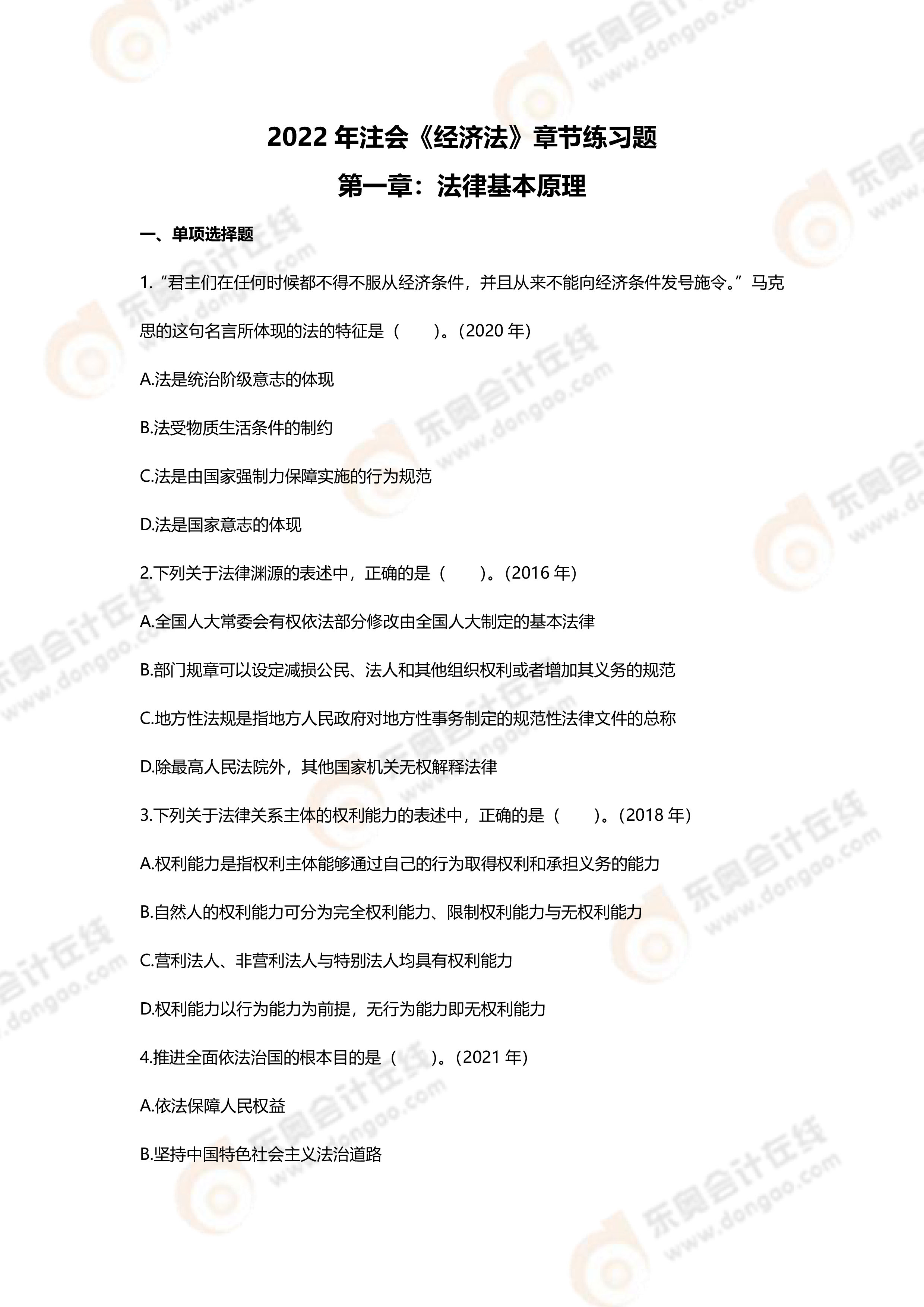 注:章節(jié)練習(xí)題出自東奧名師郭守杰老師的2022年《經(jīng)濟(jì)法》基礎(chǔ)精講班課程講義
