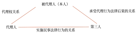代理是指代理人在代理權(quán)限內(nèi),以被代理人的名義與第三人實(shí)施民事法律行為,由此產(chǎn)生的法律后果直接由被代理人承受的一種法律制度。代理的三方關(guān)系如下: