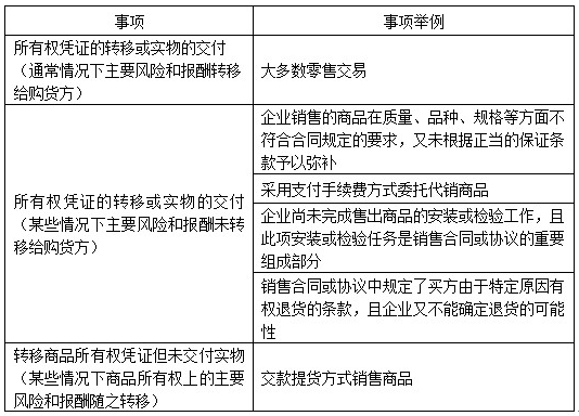 (1) 企業(yè)已將商品所有權(quán)上的主要風(fēng)險(xiǎn)和報(bào)酬轉(zhuǎn)移給購(gòu)貨方