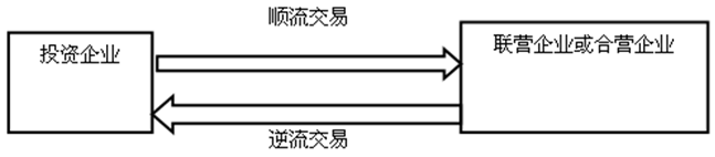 投資企業(yè)在采用權(quán)益法確認(rèn)投資收益時,應(yīng)抵消與其聯(lián)營企業(yè)及合營企業(yè)之間發(fā)生的未實(shí)現(xiàn)內(nèi)部交易損益。該未實(shí)現(xiàn)內(nèi)部交易既包括順流交易也包括逆流交易。順流交易和逆流交易圖示如下: