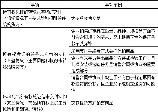 (1) 企業(yè)已將商品所有權(quán)上的主要風(fēng)險和報酬轉(zhuǎn)移給購貨方