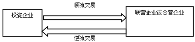 (3)投資企業(yè)在采用權(quán)益法確認(rèn)投資收益時(shí),應(yīng)抵消與其聯(lián)營企業(yè)及合營企業(yè)之間發(fā)生的未實(shí)現(xiàn)內(nèi)部交易損益。該未實(shí)現(xiàn)內(nèi)部交易既包括順流交易也包括逆流交易。順流交易和逆流交易圖示如下: