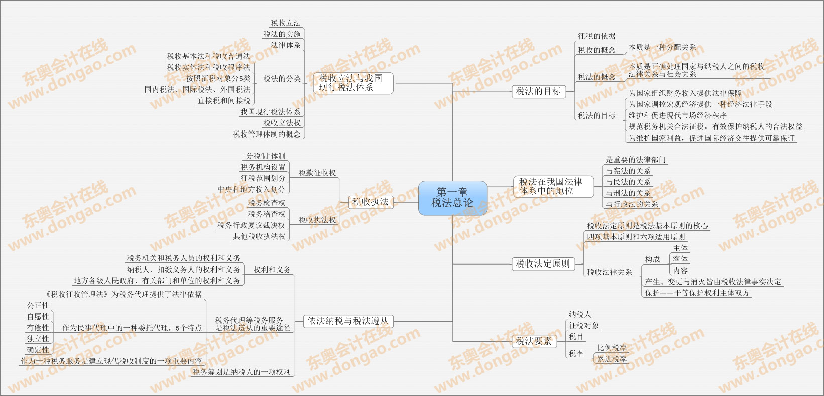 【東奧小編】2014年注冊(cè)會(huì)計(jì)師考試正式進(jìn)入基礎(chǔ)備考階段,注會(huì)知識(shí)點(diǎn)繁雜細(xì)碎,想要全面掌握注會(huì)各科目的知識(shí),需要科學(xué)高效的學(xué)習(xí)方法,思維導(dǎo)圖正是一種非常適合注會(huì)復(fù)習(xí)的學(xué)習(xí)方法,正確利用思維導(dǎo)圖,不僅能使自己積極進(jìn)行知識(shí)點(diǎn)總結(jié),形成清晰的思路,還能對(duì)知識(shí)點(diǎn)進(jìn)行快速查漏補(bǔ)缺。以下是2014《稅法》第一章稅法總論思維導(dǎo)圖: