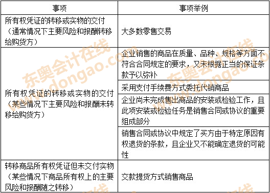 (1) 企業(yè)已將商品所有權(quán)上的主要風(fēng)險和報酬轉(zhuǎn)移給購貨方
