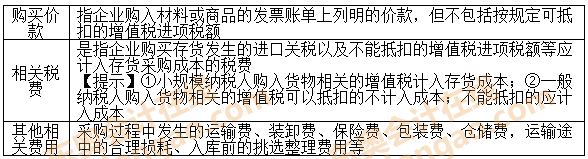 復(fù)習(xí)點(diǎn)撥:本考點(diǎn)2012年出過多選題,考生應(yīng)著重掌握外購存貨的成本,哪些費(fèi)用包含進(jìn)成本中,哪些是不計入成本的,一定要分清,可參考下文圖表的歸納。