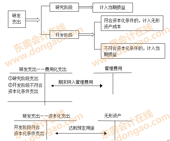 內(nèi)部研究開發(fā)費用的會計處理如下圖所示: