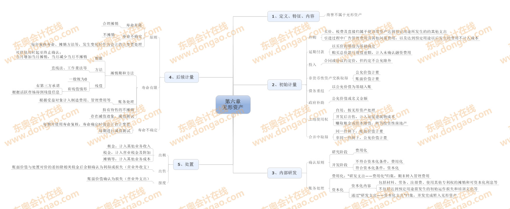 【東奧小編】2014年注冊會計(jì)師考試正式進(jìn)入基礎(chǔ)備考階段,注會知識點(diǎn)繁雜細(xì)碎,想要全面掌握注會各科目的知識,需要科學(xué)高效的學(xué)習(xí)方法,思維導(dǎo)圖正是一種非常適合注會復(fù)習(xí)的學(xué)習(xí)方法,正確利用思維導(dǎo)圖,不僅能使自己積極進(jìn)行知識點(diǎn)總結(jié),形成清晰的思路,還能對知識點(diǎn)進(jìn)行快速查漏補(bǔ)缺。以下是2014注會《會計(jì)》第六章無形資產(chǎn)思維導(dǎo)圖: