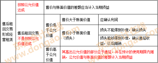 售后租回交易認定為經(jīng)營租賃的,應當分別情況處理:在有確鑿證據(jù)表明售后租回交易是按照公允價值達成的, 售價與賬面價值的差額應當計入當期損益。如果售后租回交易不是按照公允價值達成的,有關損益應于當期確認;但若該損失將由低于市價的未來付款額補償?shù)?應將其遞延,并按與確認租金費用相一致的方法分攤于預計的資產(chǎn)使用期限內(nèi);售價高于公允價值的,其高出公允價值的部分應予遞延,并在預計的使用期限內(nèi)攤銷。