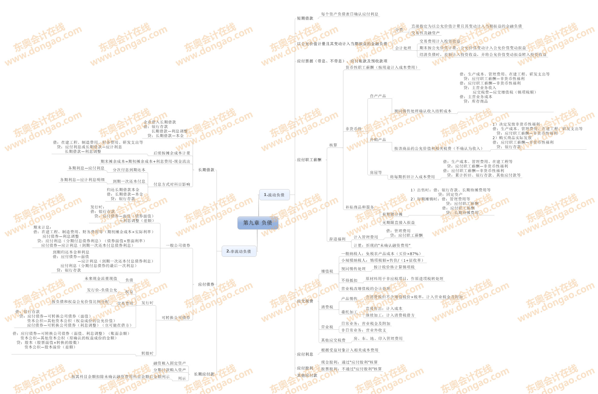 【東奧小編】2014年注冊(cè)會(huì)計(jì)師考試正式進(jìn)入基礎(chǔ)備考階段,注會(huì)知識(shí)點(diǎn)繁雜細(xì)碎,想要全面掌握注會(huì)各科目的知識(shí),需要科學(xué)高效的學(xué)習(xí)方法,思維導(dǎo)圖正是一種非常適合注會(huì)復(fù)習(xí)的學(xué)習(xí)方法,正確利用思維導(dǎo)圖,不僅能使自己積極進(jìn)行知識(shí)點(diǎn)總結(jié),形成清晰的思路,還能對(duì)知識(shí)點(diǎn)進(jìn)行快速查漏補(bǔ)缺。以下是2014注會(huì)《會(huì)計(jì)》第九章負(fù)債思維導(dǎo)圖: