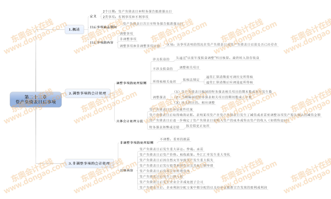 2014注會(huì)《會(huì)計(jì)》第二十三章資產(chǎn)負(fù)債表日后事項(xiàng)思維導(dǎo)圖