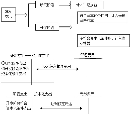 內(nèi)部研究開發(fā)費(fèi)用的會計(jì)處理如下圖所示: