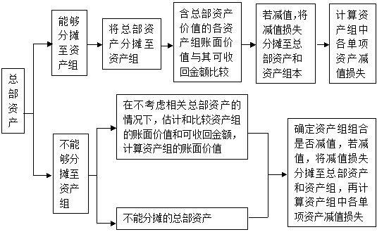 總部資產(chǎn)的減值測(cè)試如下圖所示: