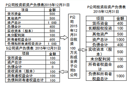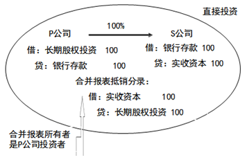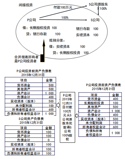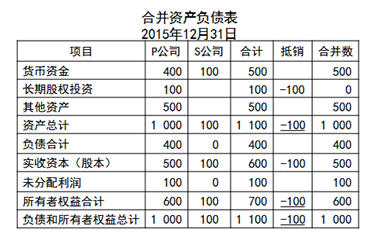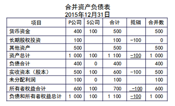 、貾公司投出100萬元貨幣資金形成S公司,作為企業(yè)集團整體,相當于貨幣資金100萬元由一個賬戶轉(zhuǎn)入另一個賬戶,P公司個別財務報表中的長期股權(quán)投資和S公司個別財務報表中的實收資本不應存在,應予抵銷。