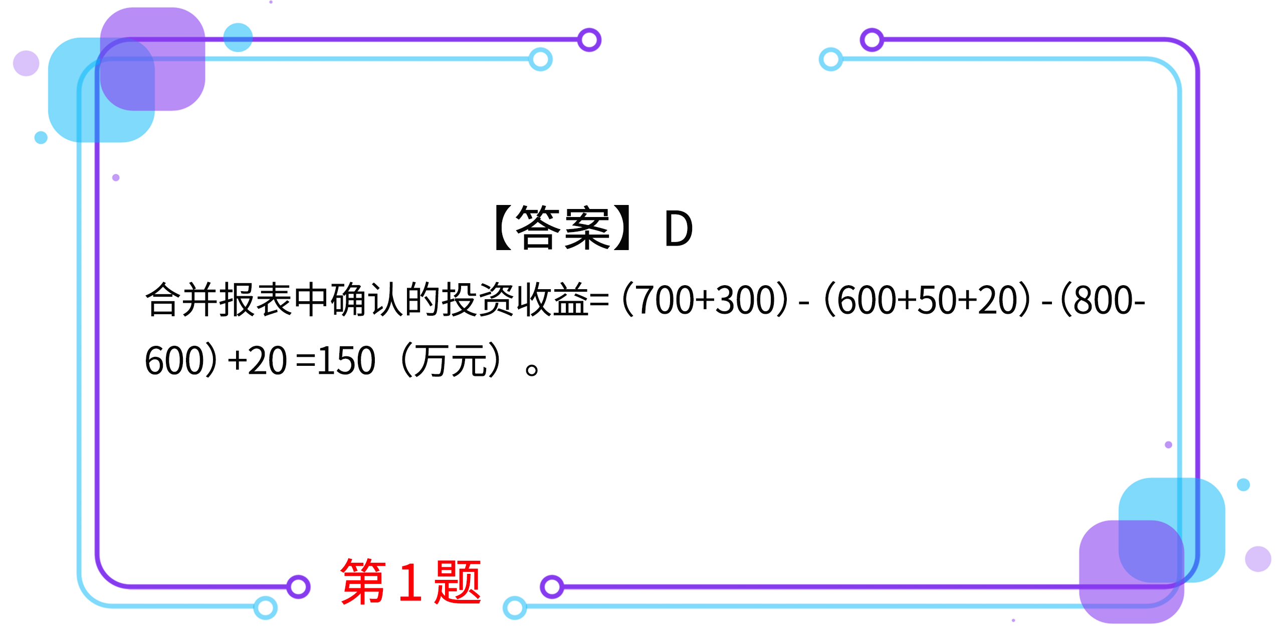1.20×1年1月1日,甲公司支付800萬元取得乙公司100%的股權(quán)。購買日乙公司可辨認(rèn)凈資產(chǎn)的公允價(jià)值為600萬元。20×1年1月1日至20×2年12月31日期間,乙公司以購買日可辨認(rèn)凈資產(chǎn)公允價(jià)值為基礎(chǔ)計(jì)算實(shí)現(xiàn)的凈利潤為50萬元(未分配現(xiàn)金股利),持有以公允價(jià)值計(jì)量且其變動(dòng)計(jì)入其他綜合收益的金融資產(chǎn)(債務(wù)工具)的公允價(jià)值上升20萬元。除上述外,乙公司無其他影響所有者權(quán)益變動(dòng)的事項(xiàng)。20×3年1月1日,甲公司轉(zhuǎn)讓所持有乙公司70%的股權(quán),取得轉(zhuǎn)讓款項(xiàng)700萬元;甲公司持有乙公司剩余30%股權(quán)的公允價(jià)值為300萬元。轉(zhuǎn)讓后,甲公司能夠?qū)σ夜臼┘又卮笥绊?。甲公司因轉(zhuǎn)讓乙公司70%股權(quán)在20×3年度合并財(cái)務(wù)報(bào)表中應(yīng)確認(rèn)的投資收益是( )萬元。