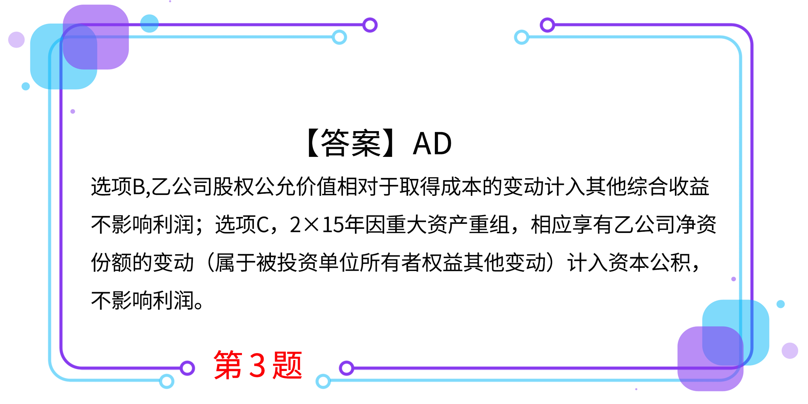 C.2×15年因重大資產(chǎn)重組,相應(yīng)享有乙公司凈資產(chǎn)份額的變動(dòng)額影響2×15年利潤