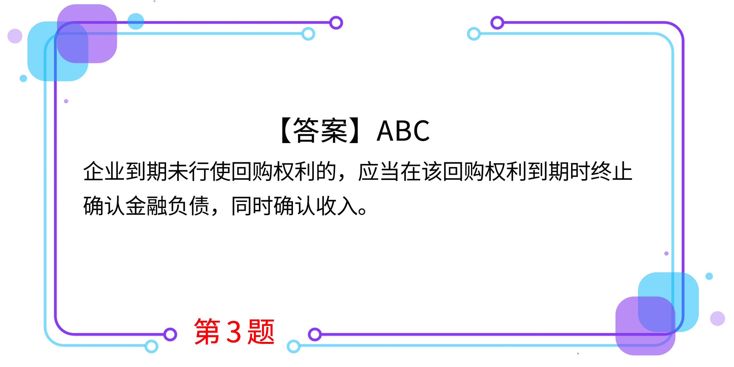 3.對(duì)于企業(yè)因存在與客戶的遠(yuǎn)期安排而負(fù)有回購(gòu)義務(wù)或企業(yè)享有回購(gòu)權(quán)利的售后回購(gòu)交易,下列表述中正確的有( )。