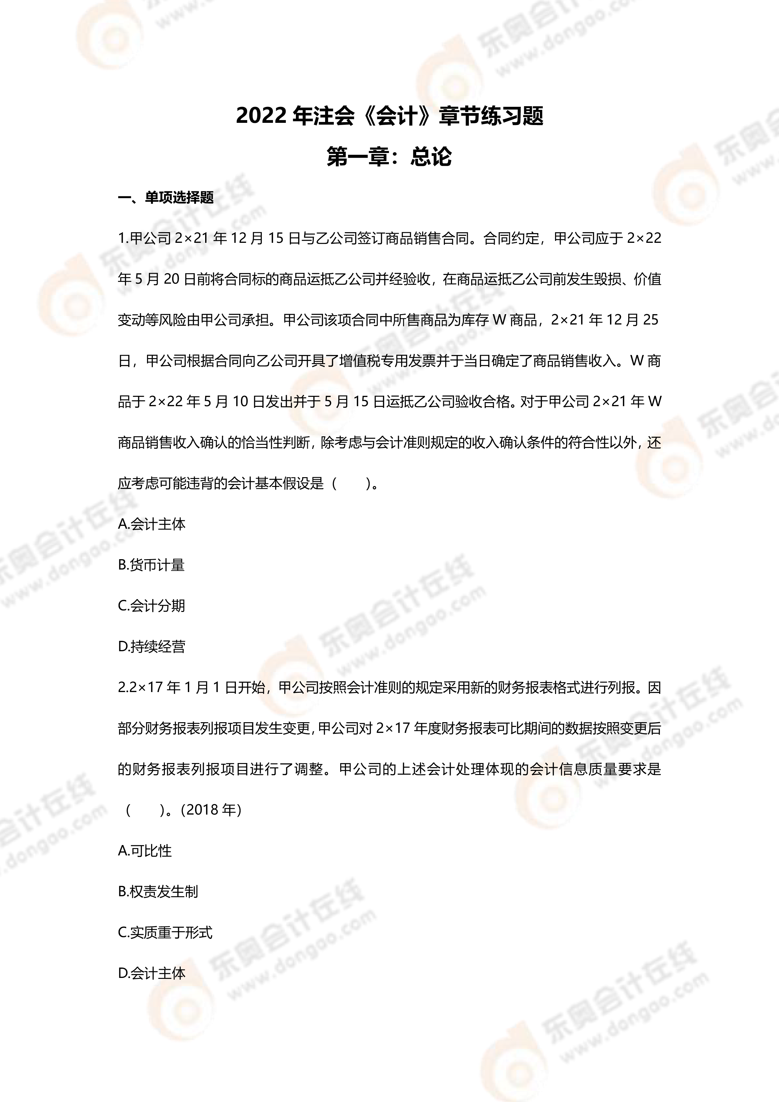 注:章節(jié)練習題出自東奧名師張志鳳老師的2022年《會計》基礎精講班課程講義
