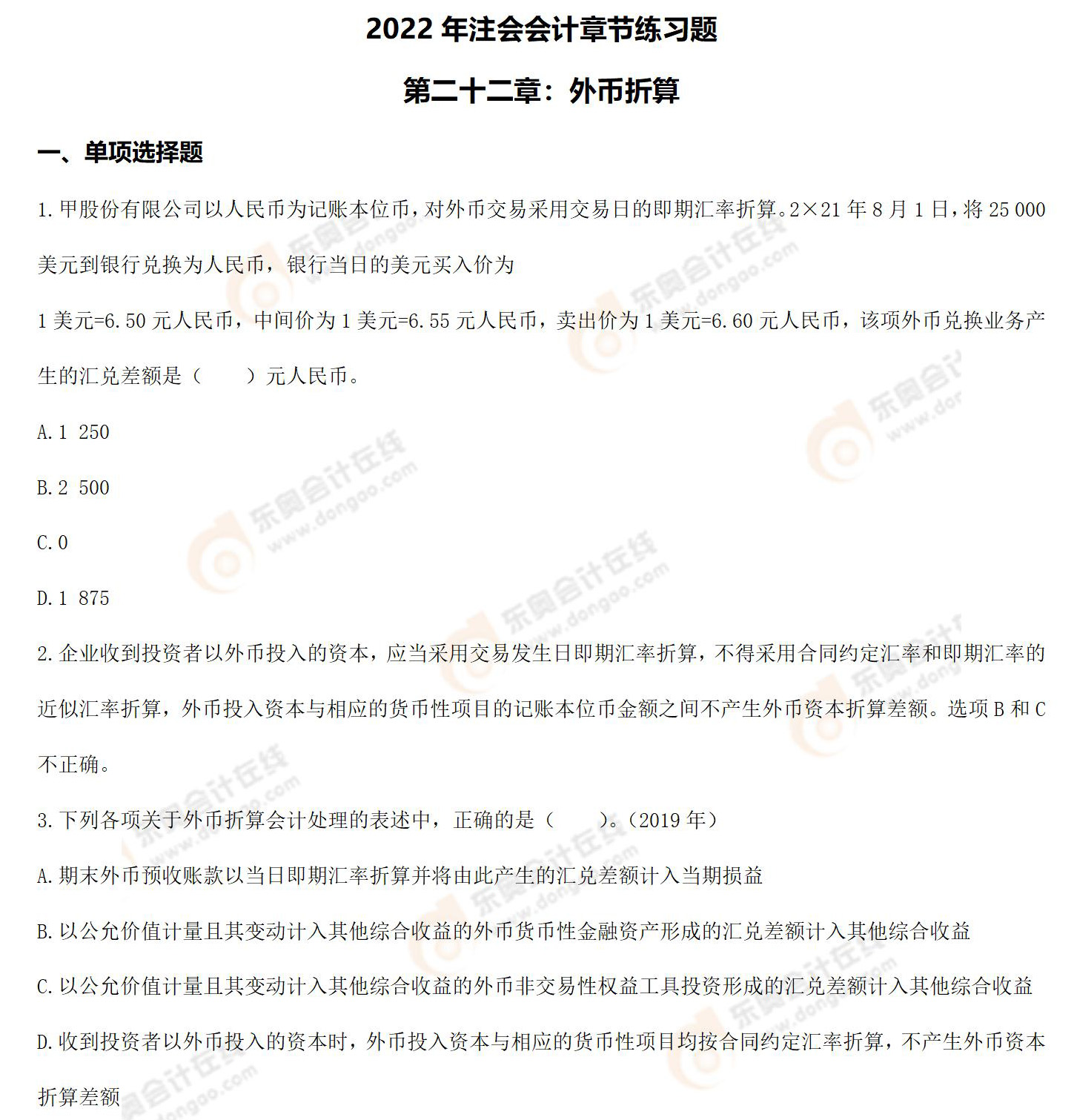 做題可以幫助我們了解對知識點的掌握情況,查漏補缺找短板,然后再針對性的加強練習(xí),提高整體復(fù)習(xí)效率。小編為大家整理了注會會計第二十二章章節(jié)練習(xí)題,快來練習(xí)吧。