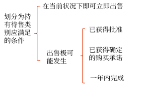 非流動資產(chǎn)或處置組劃分為持有待售類別,應(yīng)當(dāng)同時(shí)滿足下列條件: