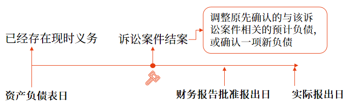 (一)資產負債表日后訴訟案件結案,法院判決證實了企業(yè)在資產負債表日已經存在現時義務,需要調整原先確認的與該訴訟案件相關的預計負債,或確認一項新負債。