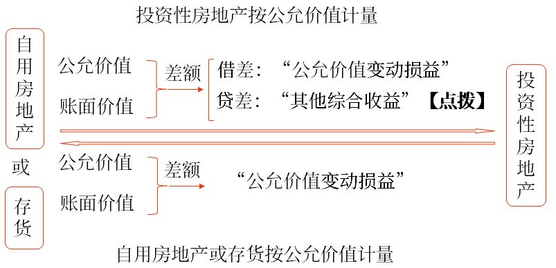 正常情況下,資產(chǎn)價值的變動應(yīng)先計入損益,進而影響所有者權(quán)益,但“自用房地產(chǎn)或存貨”轉(zhuǎn)換為采用公允價值模式計量的“投資性房地產(chǎn)”,可能會出現(xiàn)非常大的貸方差額,若計入損益,可能會出現(xiàn)人為調(diào)節(jié)當期利潤的現(xiàn)象,從而使會計信息失真。