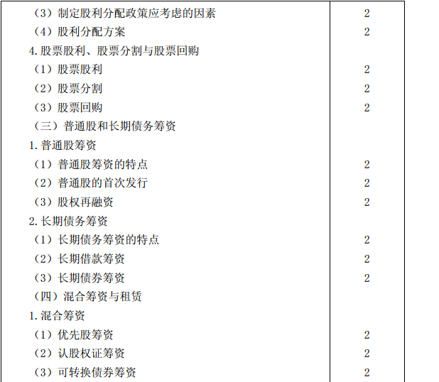 3.資本結(jié)構(gòu)與長期籌資,包括資本結(jié)構(gòu)、股利分配、普通股和長期債務(wù)籌資,以及混合籌資與租賃;
